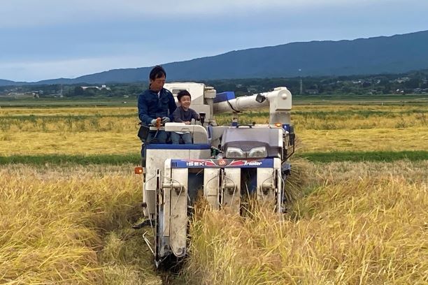 認証農家さんによるコンバインの試乗も行われ、子どもたちも大盛り上がり。