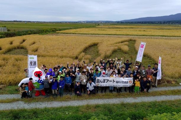 令和7年10月11日に「朱鷺と暮らす郷 田んぼアート」稲刈りイベントが開催され、コープデリにいがた様をはじめ、多くの方々にご参加いただきました。